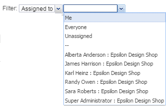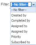 Proceed from left to right since the content of the second dropdown menu depends on what you select in the first dropdown menu. (i.e., Filter: Assigned To: Me)