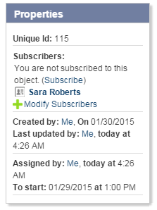 - Subscribers: People who are subscribed to this task. Clicking on a subscriber's name takes you to the corresponding user profile.
