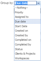 - Group by: By Grouping, you define which aspect of your tasks is taken as a criterion to organize them into smaller groups, such as Same Due date, same Client, same Workspace, etc. Grouping helps you to generate task lists for many purposes.