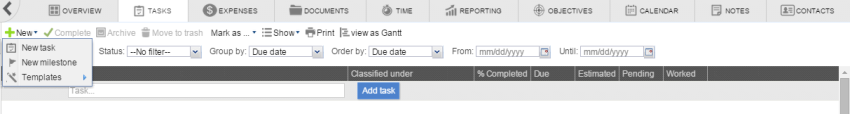 Tasks can be classified in various ways. Besides the ones explained in the previous sections, tasks count with their own Drag & Drop classification feature. Please refer to this article to find out more.