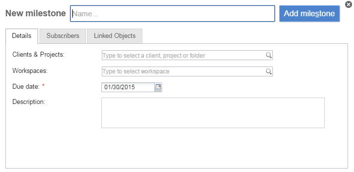In the main section of the new milestone, you will be able to add the basic details of it:
