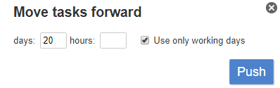 - Push Tasks: This feature allows you to select a set of tasks and postpone all of them while maintaining the same plan structure. For example, if a project is postponed for 20 days, we would only have to select all tasks related to the project and postpone them for 20 days.