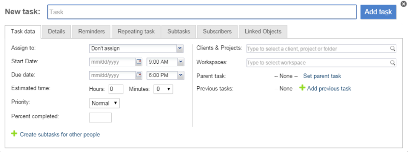 This same feature will show up when you click on Add Subtask, so you can enter your Subtask's information.