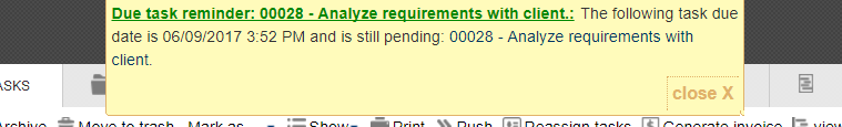 Pop-up reminders are displayed at the top of the screen and look as follows: