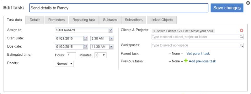 Tasks can be assigned to clients, projects, workspaces, and milestones.