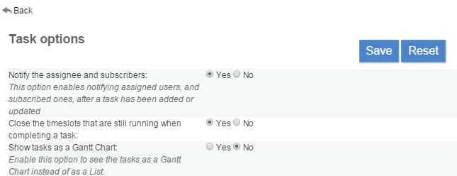 Apply to all subscribers'' if you wish for the reminder to be sent out to all the tasks' subscribers as well.*Choose the type of reminder you wish to receive: Email Notification or Pop-Up Message. *Choose when you wish to receive the Reminder (in Minutes, Hours, Days, or Weeks) before the task's Due Date. *Check