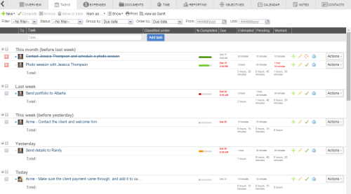 Below is a screenshot of how a typical Task Module looks in the list view, with added Tasks, Subtasks, and more.