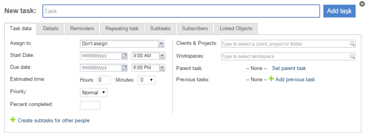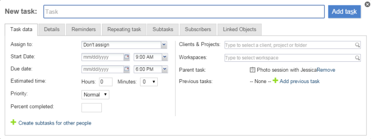 Then simply save by clicking Add Task, and your new Sub-Task will be created as a “Child Task” of the main one.