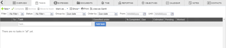 If no tasks have been created yet, your Tasks Module will look like this: