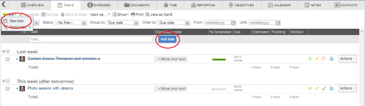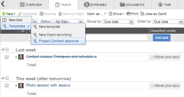 In this way, the tasks that were set up when you created the template will be created all at once.