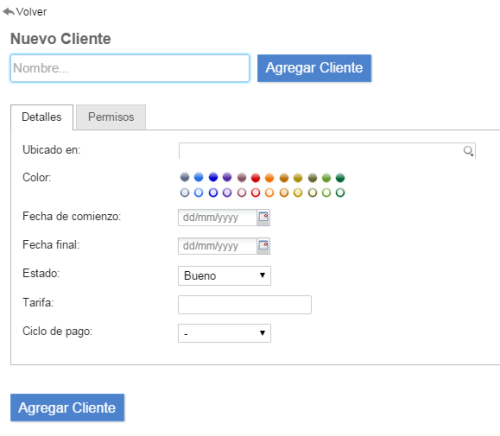 Para agregar un cliente nuevo desde el panel Vista general, debe llevar a cabo los siguientes pasos: