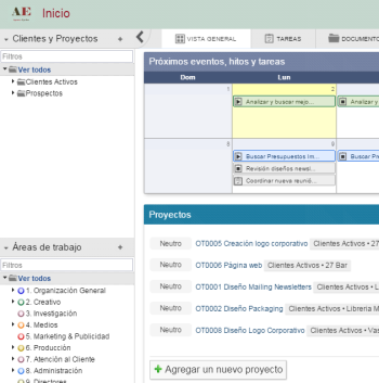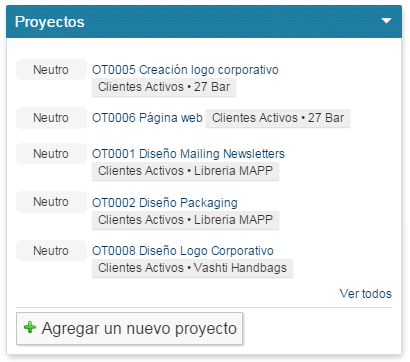 Para agregar un proyecto nuevo desde el panel Vista general, debe llevar a cabo los siguientes pasos (similares a agregar un cliente):
