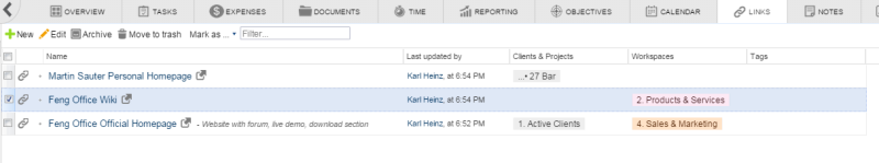 Web links are the same thing that you call bookmarks or favorites in your browser. By storing them in EVX Software, you can share them with other users. Larger collections of web links can be organized using workspaces and tags, as you know it from any other object type in EVX Software.