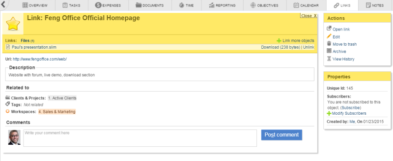 - Archive: Lets you archive this web link into the Archived Objects folder.
