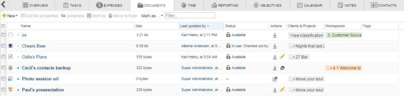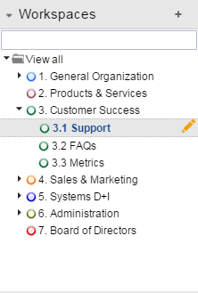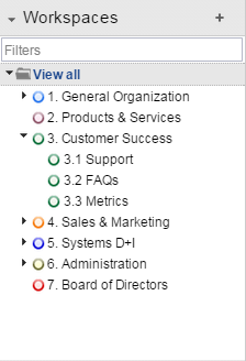 - Workspaces can contain other workspaces. In other words, you can build hierarchies of workspaces with up to 10 levels. (But be careful: Too many workspaces or a complex structure bear the potential of putting information into the wrong workspace, which makes it invisible for the intended audience or even accessible for unauthorized users.)