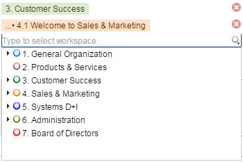 When you are editing a multiple workspace object, you will see the workspace tree very much like in the left sidebar (including the filtering option). This lets you assign as many workspaces as you like for that object.